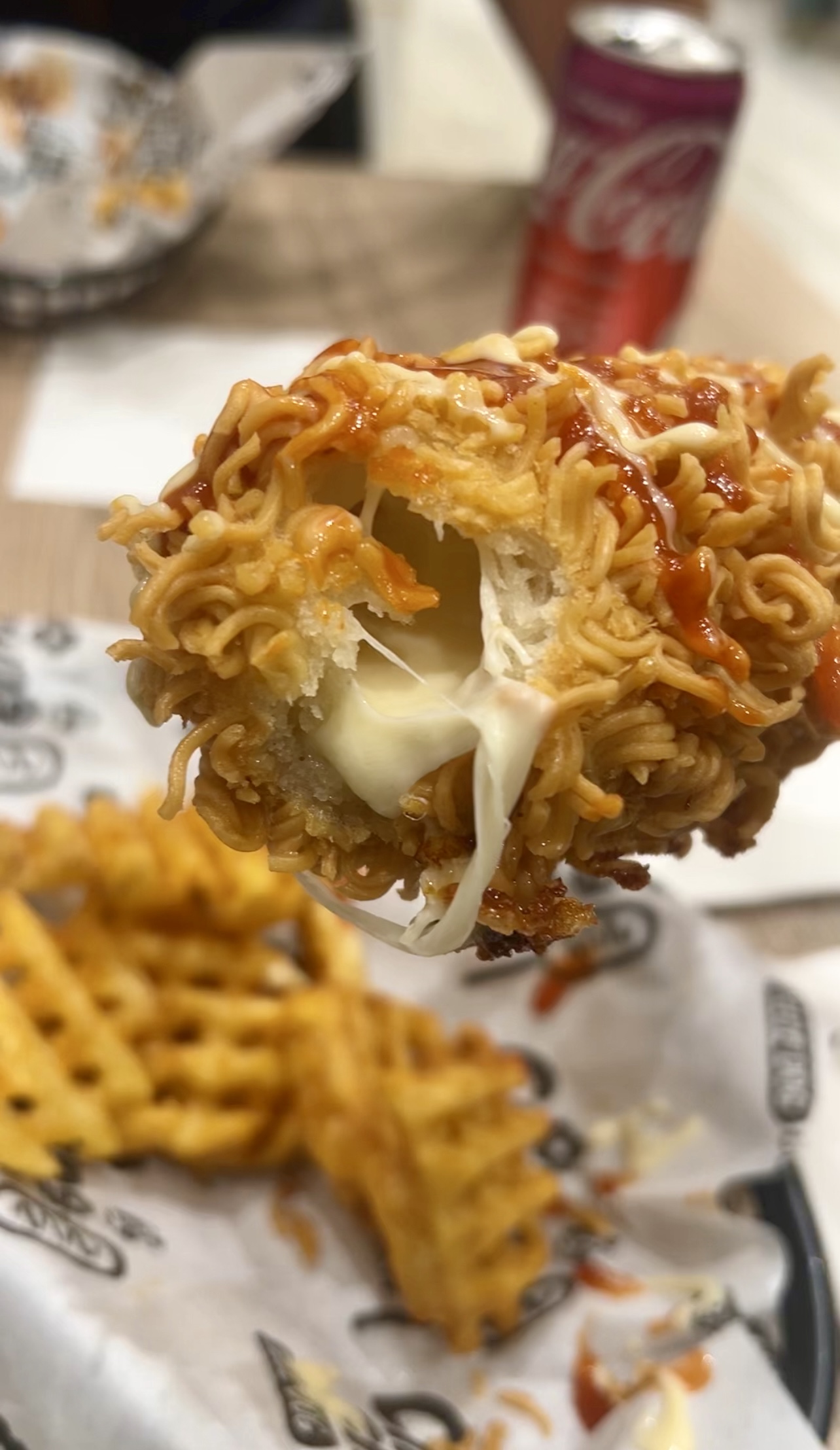 Après avoir enfin sauté le pas, le verdict est sans appel : j’ai adoré !! Chez Chungchun, l’expérience est personnalisée : on peut choisir entre une version avec ou sans saucisse à l’intérieur, et ce qui m’intéresse surtout c’est la panure ! On a le choix entre une chapelure classique, des nouilles croustillantes, des morceaux de patate, voire même des nuggets pour les plus gourmands. Et pour couronner le tout, un éventail de sauces est proposé : de la mayo épicée à la sauce chili sucrée en passant par le ketchup, barbecue, de quoi satisfaire toutes les papilles.