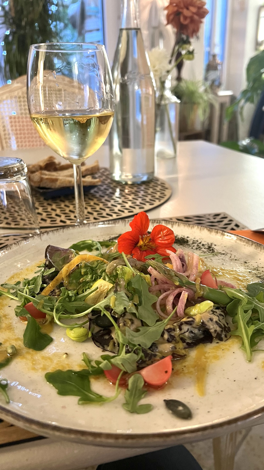 Chez Flora Bio, j’ai découvert de nouvelles saveurs… Installé à Toulon, dans un havre de nature, on peut s’installer à l’extérieur ou à l’intérieur, dans une ambiance décorative atypique. Des plantes stabilisées au plafond reflètent parfaitement l’essence végétale de la cuisine.
