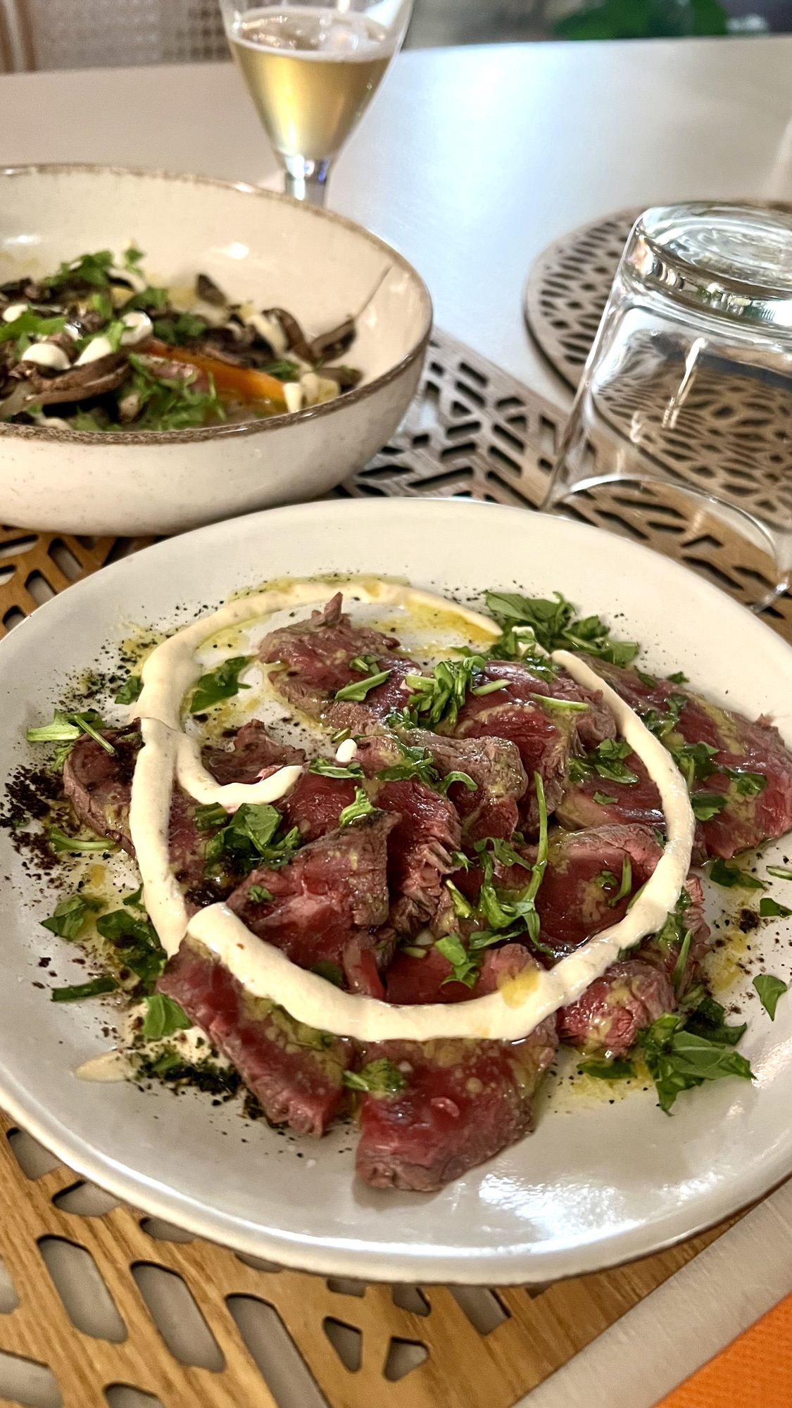Pour le plat principal, la dégustation « Terre » mettait à l’honneur le bœuf Angus, une viande réputée pour sa tendreté, provenant d’élevages respectueux du bien-être animal. Accompagné de légumes parfaitement cuits, ce plat était un véritable délice.