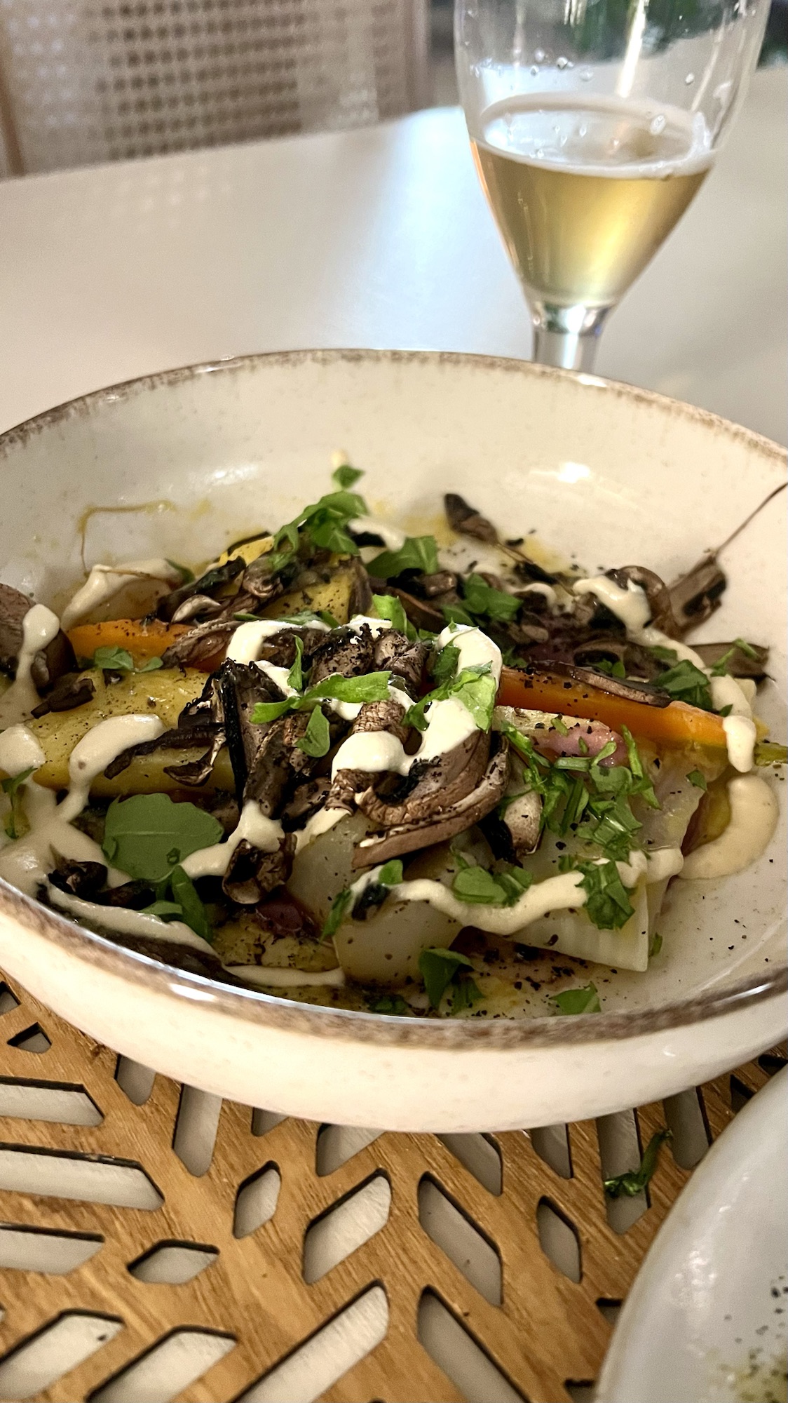 La suite du repas nous a enchantés avec une salade végétale parfaitement dressée et une crème de navet des plus délicates. Une explosion de saveurs et de textures, le croquant de l’asperge puis le fondant de la salade et de la crème de navet…
