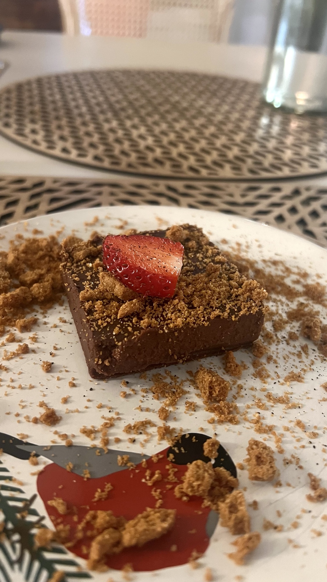 Enfin, pour clôturer le repas, un gâteau au mélange subtil de chocolat et de crème de spéculoos préparé maison, a su ravir nos papilles.