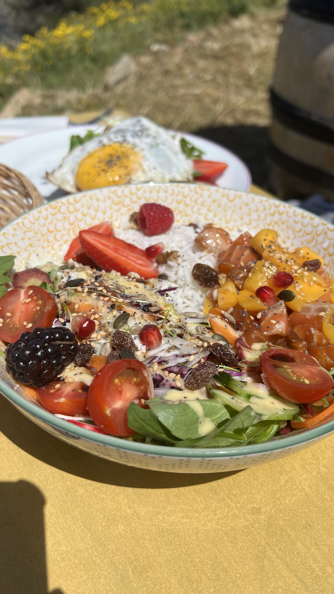 Je dois dire que c’était le meilleur Poke Bowl de ma vie. Le saumon était d’une fraîcheur incomparable, accompagné de fruits tels que de la mûre, fraise, framboise, mangue et graines de grenade. Le mélange comprenait aussi des raisins secs, du concombre, du chou rouge, des tomates, des carottes, du riz et de la salade. L’assaisonnement était parfait, le riz n’était pas sec, et l’ensemble sucré-salé était rafraîchissant à souhait.