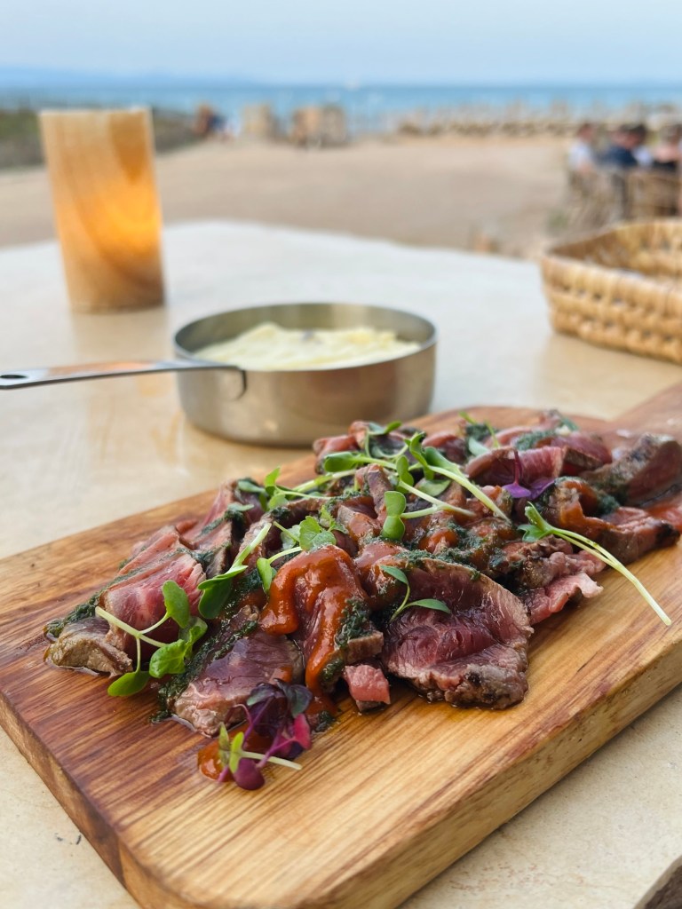 Lors de notre visite, nous avons savouré un tataki de bœuf accompagné de son condiment de tomates et d’une purée maison, ainsi qu’un bar servi avec des légumes. Les présentations, souvent sur des planches, ajoutent une touche esthétique que j’apprécie beaucoup.