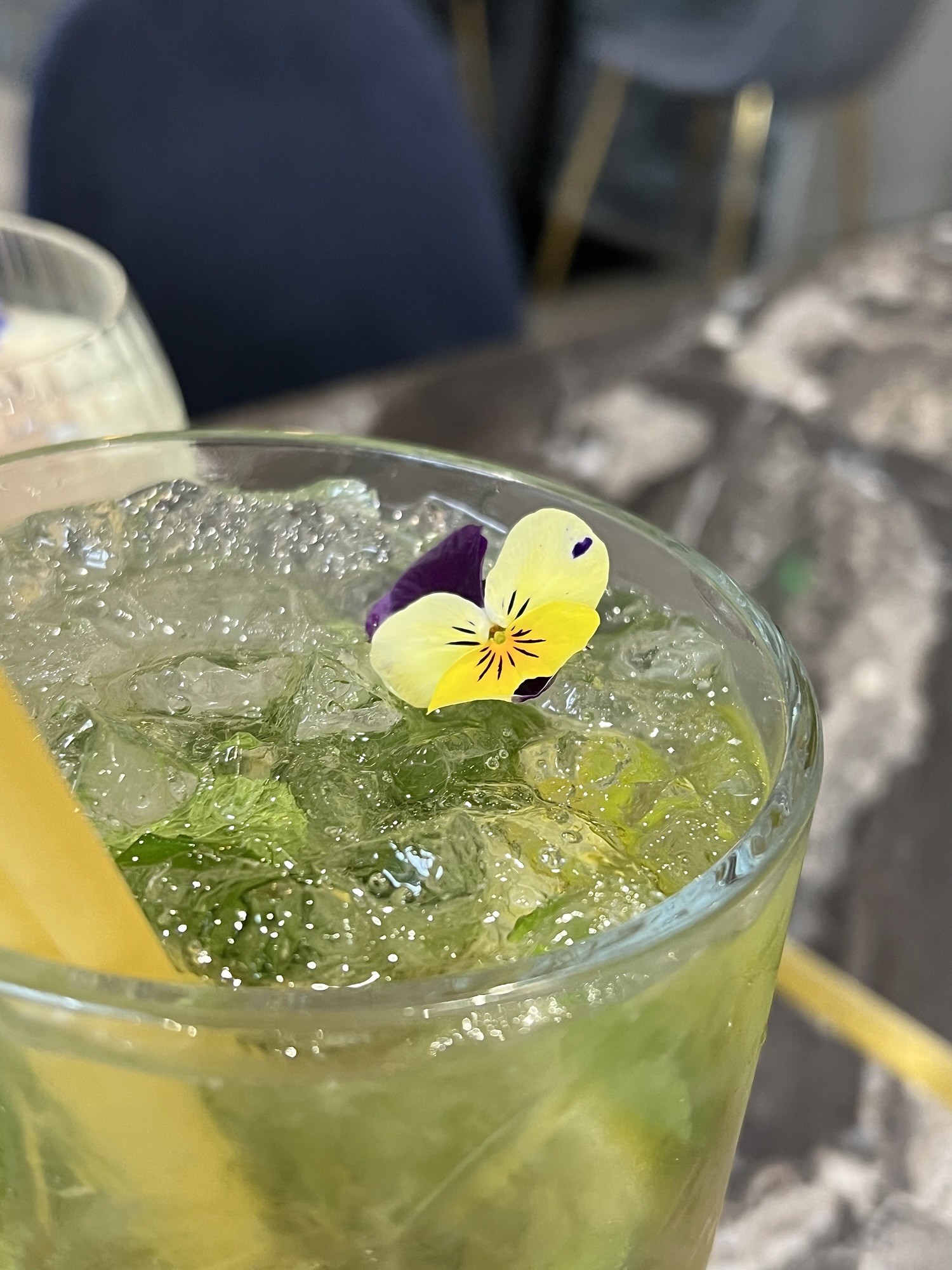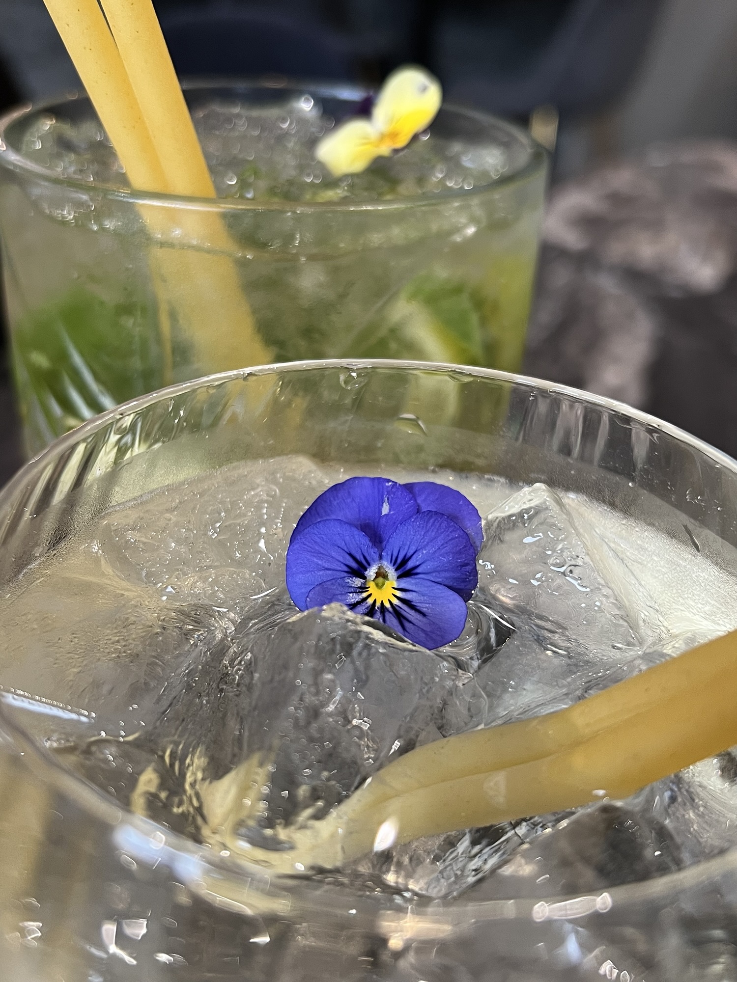 Dès l’arrivée, on est charmé par l’ambiance chaleureuse et l’attention portée aux détails. Les cocktails, sublimés par une délicate fleur de pensée, annonce déjà une expérience raffinée et pleine de surprises.