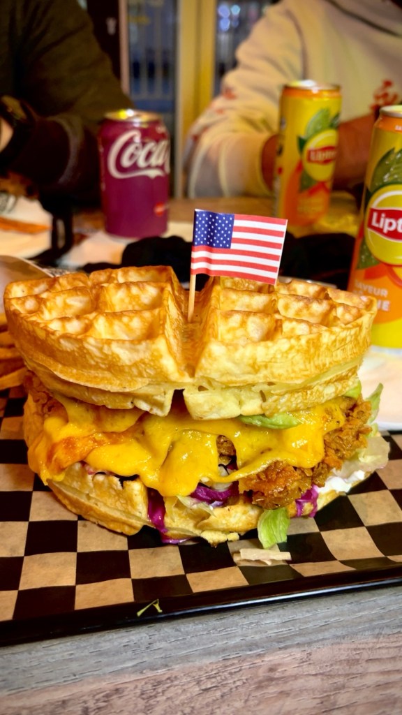 Mon gros coup de cœur fût le burger avec des gaufres à la place du pain. Un mélange moelleux-croustillant, sucré-salé hyper réussi. Typiquement le genre de plat qu’on ne trouve pas partout.